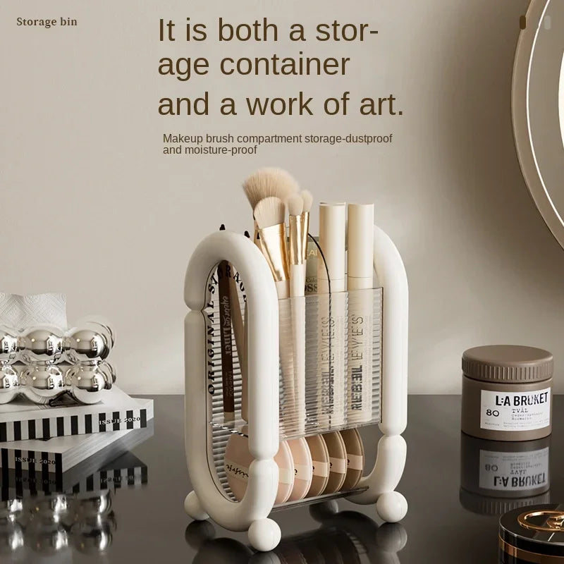 This premium holder features dedicated compartments for makeup brushes, lipsticks, eyebrow pencils, eye shadows, and more, with a secure lid to keep everything dust-free and protected. The elegant design makes it a stunning desktop accent while providing ample space for all your essentials. Perfect for daily use, travel, or displaying your favorite beauty tools with style.